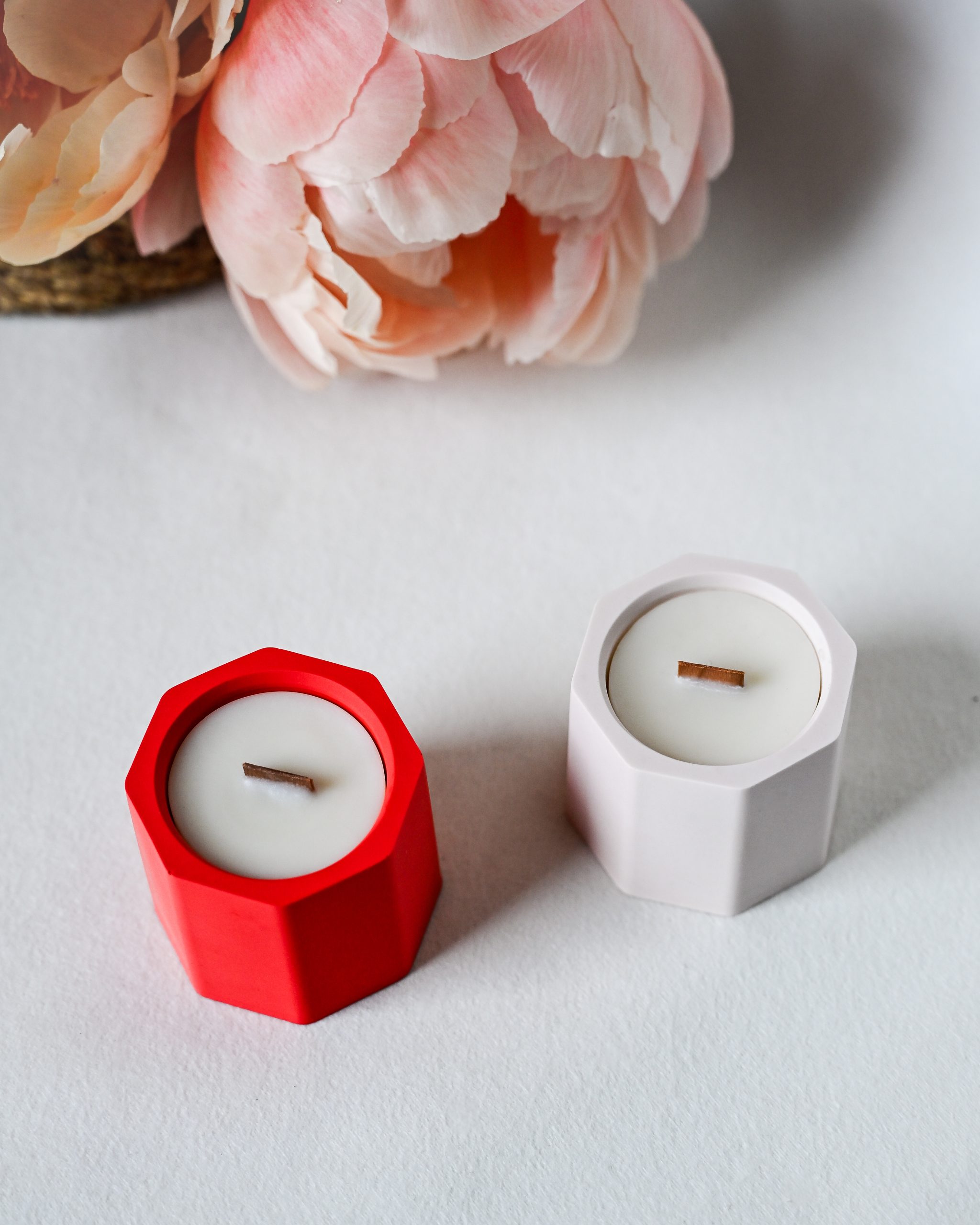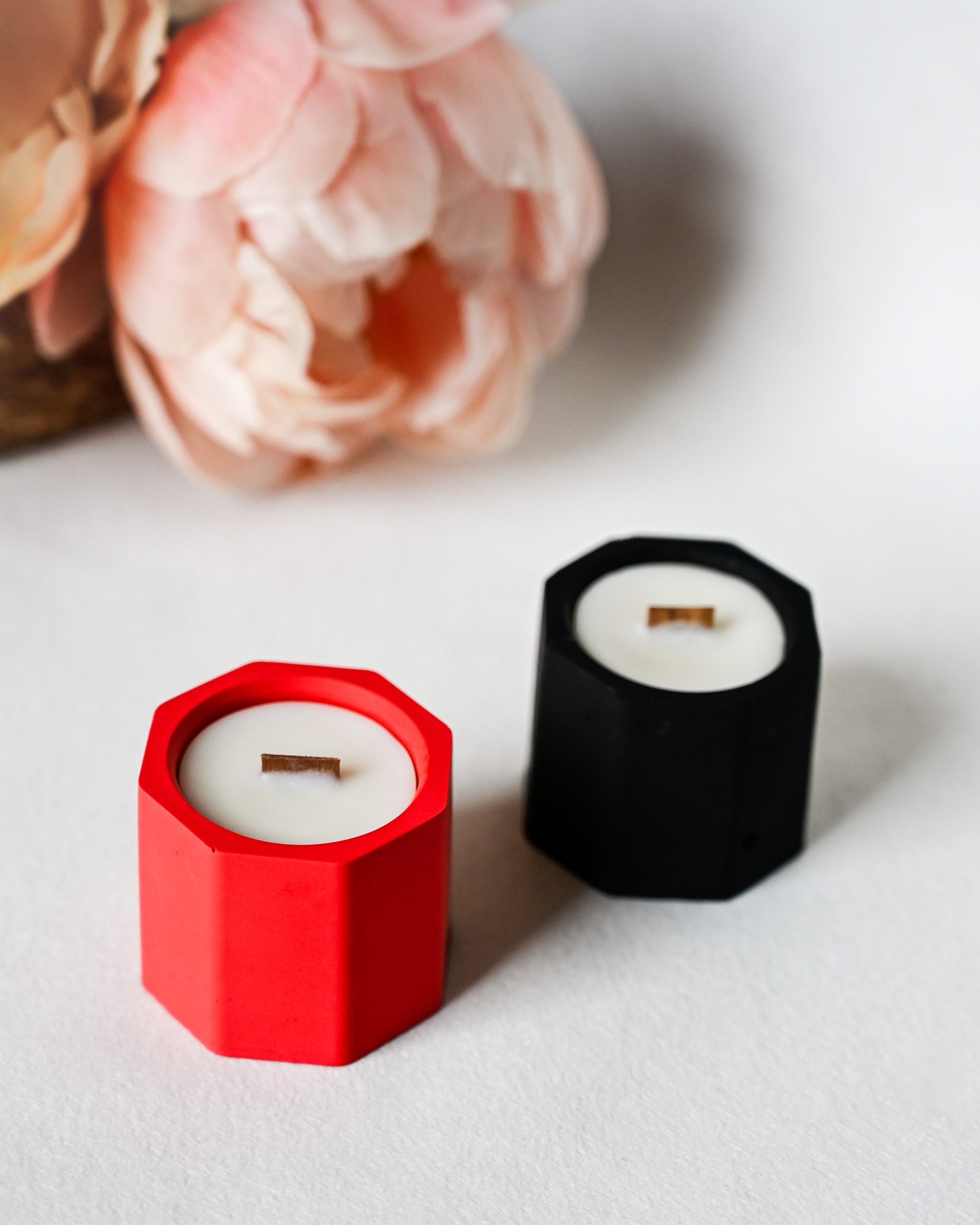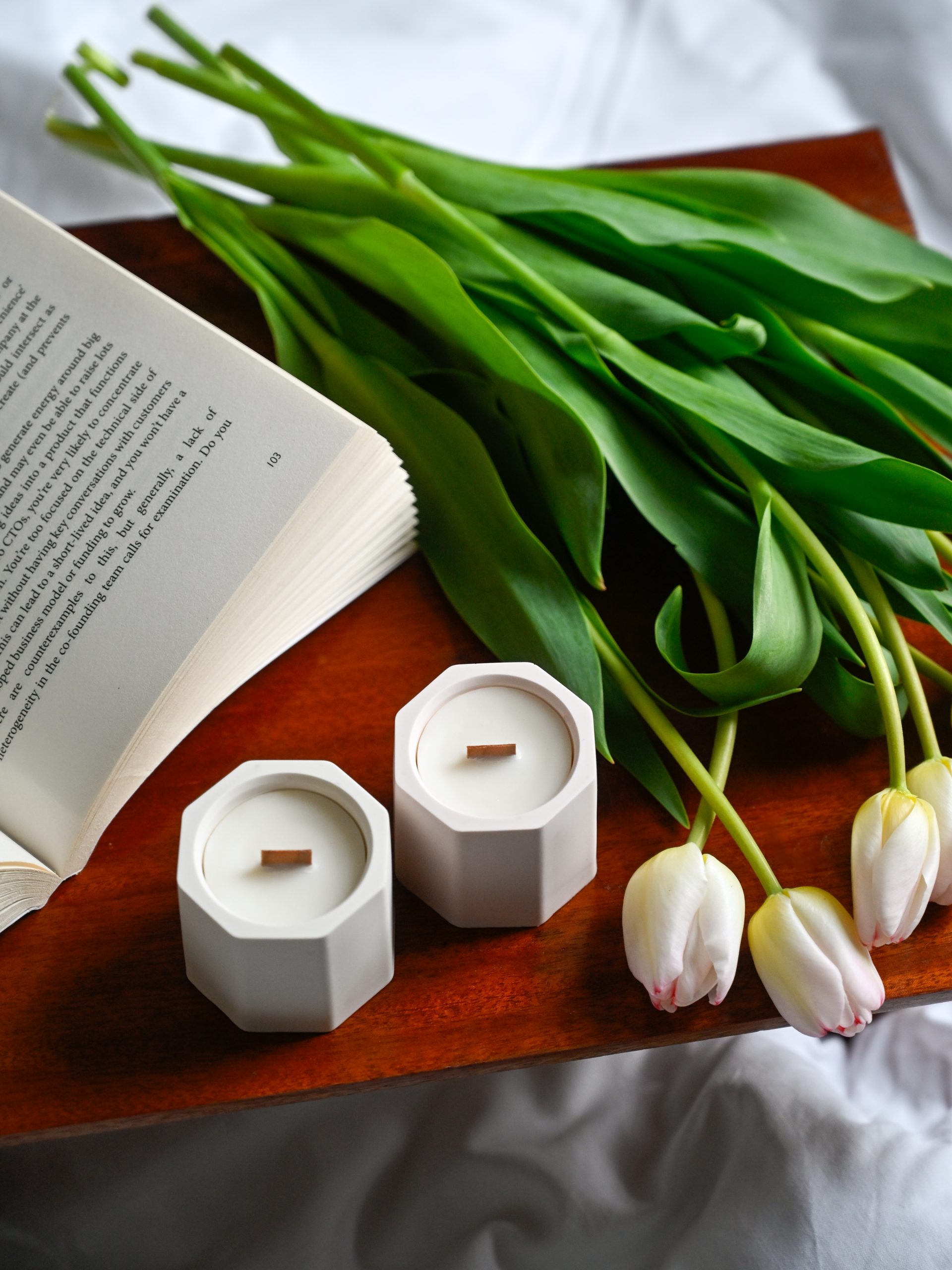 Tip: Wooden wicks create a soft crackling sound, enhancing relaxation and ambiance. Allow the candle to cool completely before handling or repurposing the Jesmonite vessel.